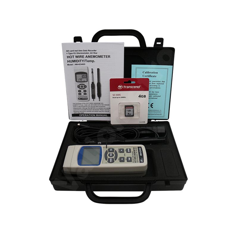 Anemómetro de hilo caliente + flujo, humedad y temperatura con memoria SD AM-4234SD