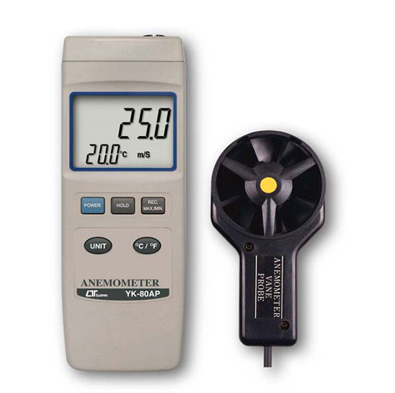 Anemómetro de veleta para mantenimiento en sistemas de acondicionamiento y calefacción, mide las velocidades del aire, las velocidades del viento y temperatura.