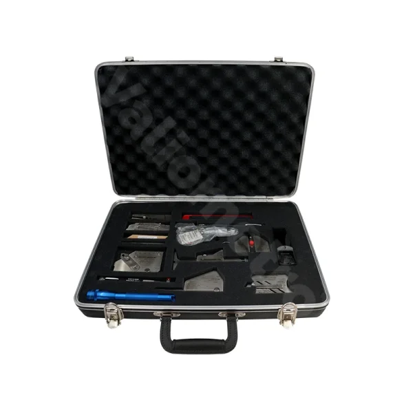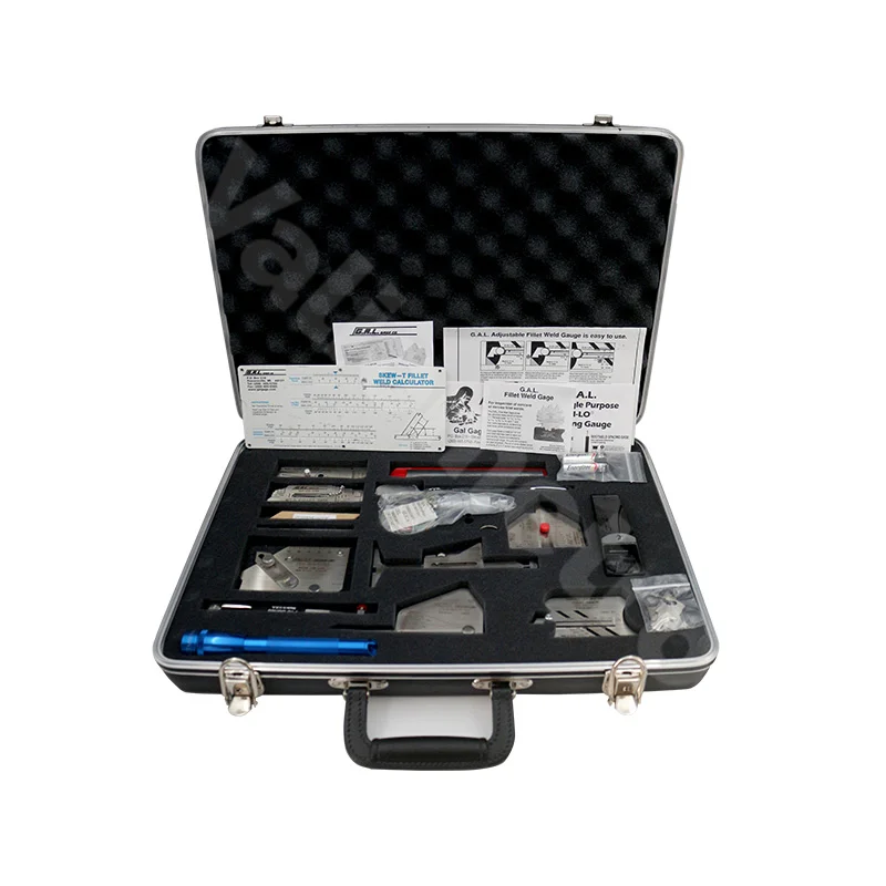 Incluye instrumentos de medición especializados para verificar la precisión de las soldaduras.