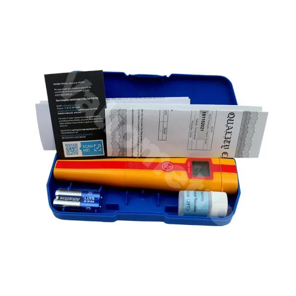 El Medidor de Salinidad de Bolsillo APERA 5052 es un equipo portátil, práctico y de alta precisión para la medición de salinidad en agua y soluciones líquidas. Diseñado con tecnología avanzada, incorpora sensor de conductividad integrado y funciones de compensación automática de temperatura (ATC) que garantizan lecturas confiables en todo momento. Su diseño tipo lapicero resistente al agua (IP67) lo hace ideal para trabajos en campo y laboratorio. El APERA 5052 permite un rango de medición amplio y exacto, con calibración automática de un punto, facilitando su uso incluso por usuarios sin experiencia técnica. Es muy utilizado en acuicultura, hidroponía, piscinas, investigación, control de calidad y procesos industriales. Gracias a su portabilidad y facilidad de uso, se convierte en una herramienta indispensable para quienes requieren monitoreo confiable de niveles de salinidad.