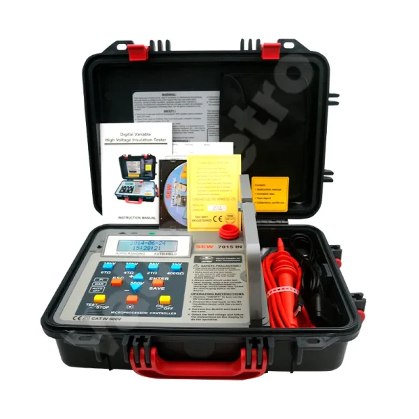 El Megóhmetro 7015 IN permite realizar pruebas de aislamiento eléctrico de alta tensión hasta 15kV.