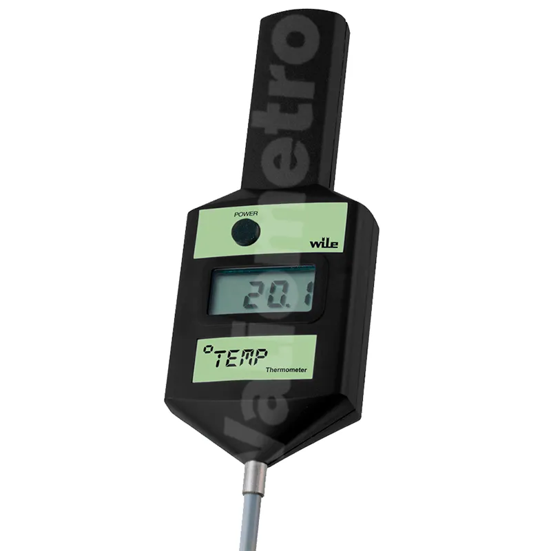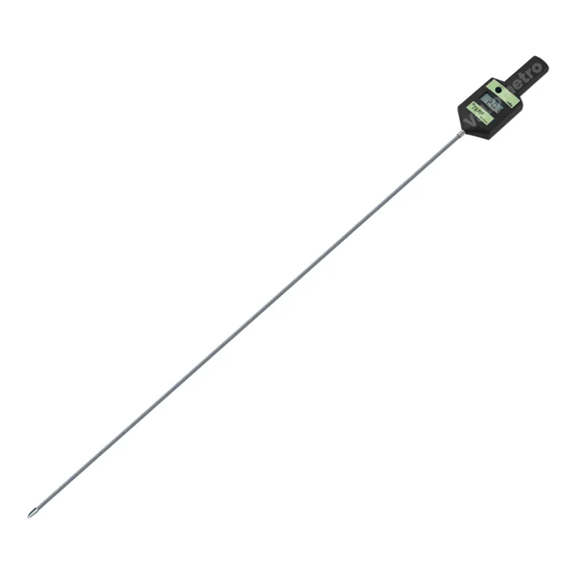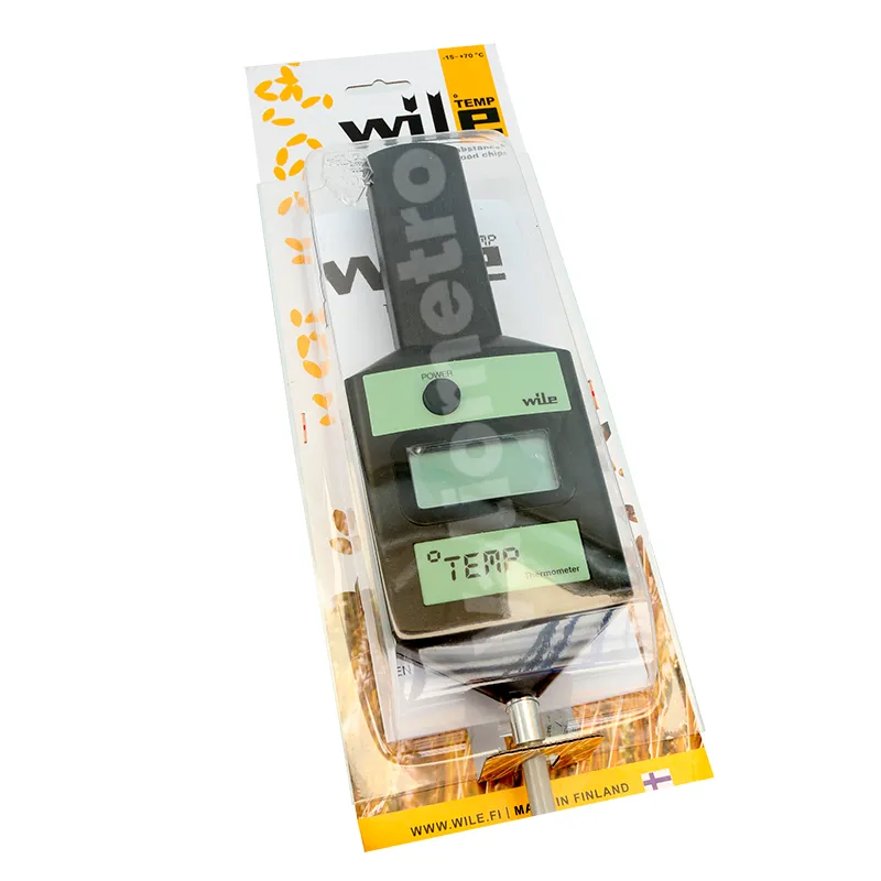 El Termómetro para granos, heno o viruta WILE TEMP es un equipo portátil diseñado para medir con precisión la temperatura en graneles de cereales, forrajes y materiales almacenados. Su uso es esencial para la detección temprana de procesos de fermentación, humedad excesiva o riesgo de deterioro, garantizando la conservación de la calidad en granos y forraje. Este termómetro cuenta con una sonda metálica robusta disponible en diferentes longitudes, que permite realizar mediciones directas en silos, depósitos y pacas de heno. La lectura se muestra en una pantalla digital clara, con rangos de medición amplios y exactitud confiable. Gracias a su diseño resistente y fácil manejo, el WILE TEMP es ideal para agricultores, cooperativas y almacenadores de granos, que buscan mantener la seguridad y el valor comercial de sus productos.