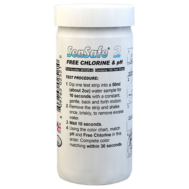 SenSafe® Chlorine 2 way es la opción ideal para medir el cloro libre y el pH en el agua. Esta tira de prueba es una combinación de nuestra tira de prueba de control de agua con cloro libre SenSafe® aprobada por la EPA, con una almohadilla de prueba de pH agregada para que ambos parámetros se puedan medir simultáneamente. La exclusiva y patentada tira SenSafe® permite una detección de bajo nivel sin sacrificar la precisión.